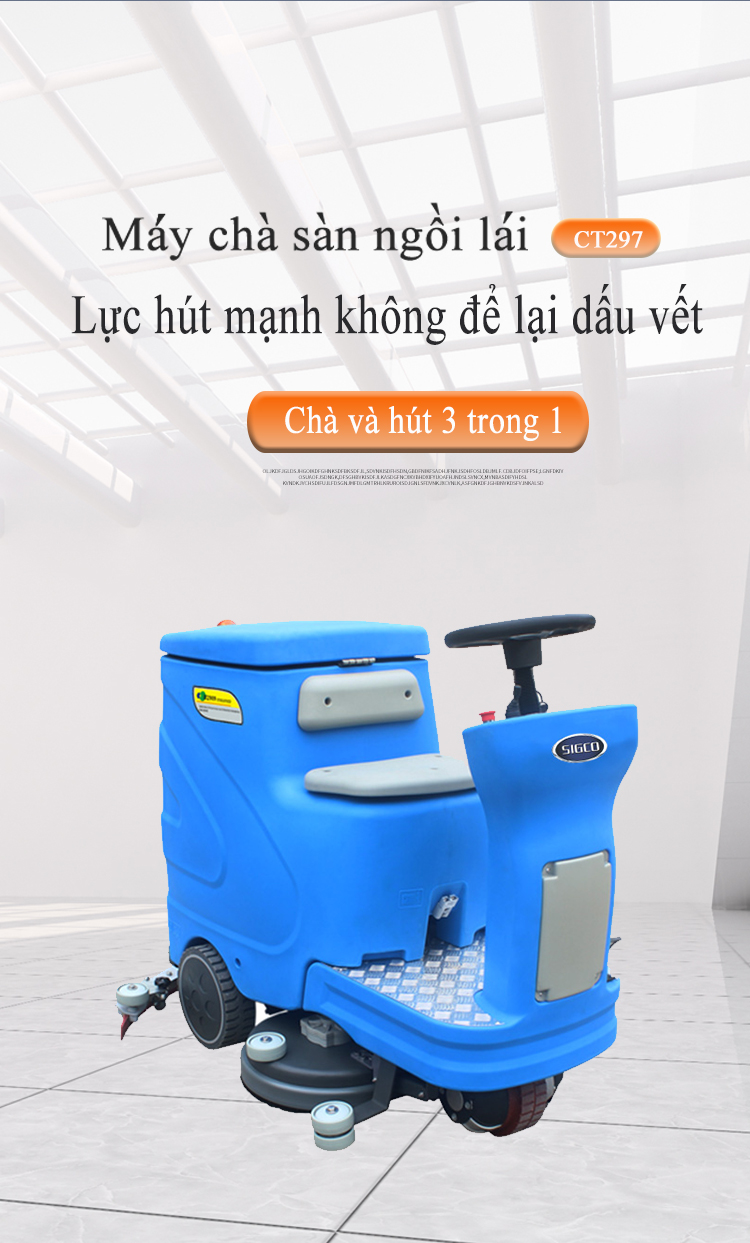 1 máy chà sàn ngồi lái. Khối lượng công việc khoảng 8-10 người. Làm sạch 4000-6000㎡ trong một giờ